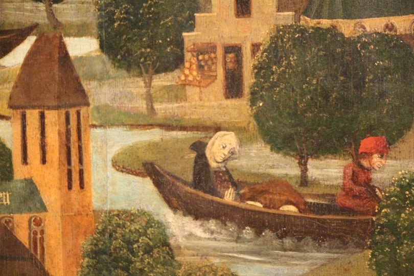 A grieving woman escaping on a boat.